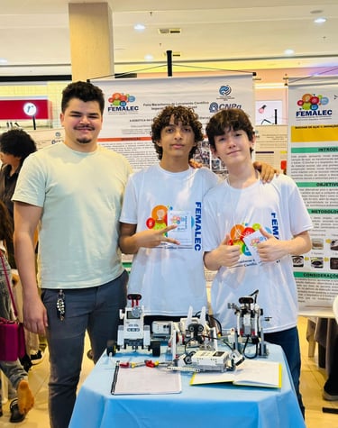 O Programa Embaixadores FEMALEC capacita estudantes da educação básica para desenvolver projetos científicos, incentivando o pensamento crítico e a inovação. Os participantes recebem treinamento e orientação especializada, culminando na apresentação de seus trabalhos durante a feira.